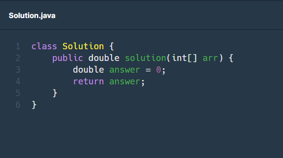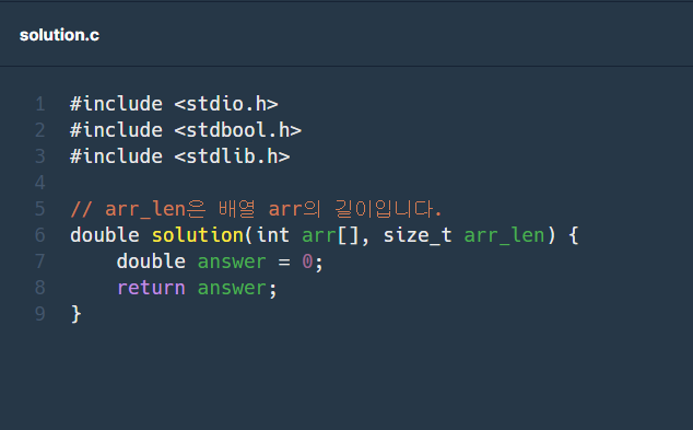정수를 담고 있는 배열 arr의 평균값을 return하는 함수, solution을 완성해보세요.
